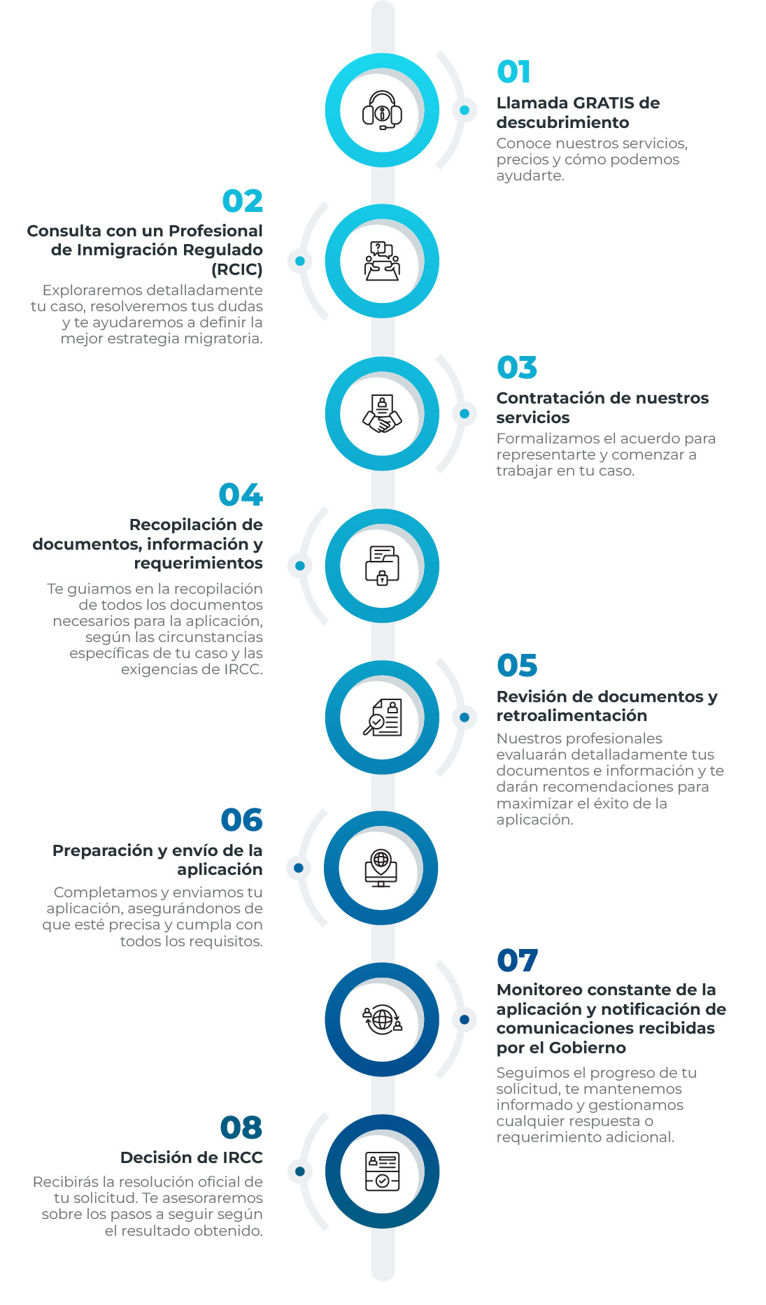 De nuestra mano, contarás con una estrategia personalizada, basada en la experiencia adquirida de miles de casos previos exitosos y nuestra continua actualización sobre las leyes y programas de inmigración. El proceso será mucho más calmado y amigable. Gracias al conocimiento de nuestros consultores, aliviaremos ese estrés, lógico, que surge cuando hacemos un trámite de semejante importancia, sin conocer todos los detalles.